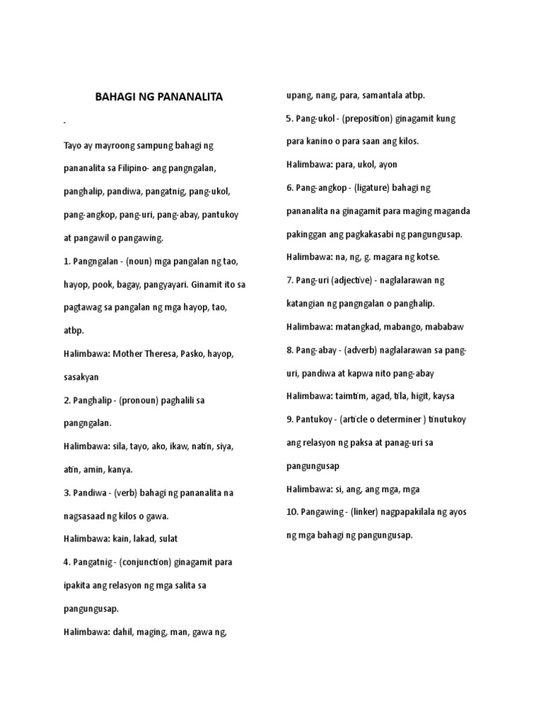 Bahagi ng pananalita na nagsasad ng kilos o galaw. Bahagi ng Pananalita Parts of Speech. Download for FREE this set Mga Bahagi ng Pananalita which you can use to develop the reading skills of your learners.